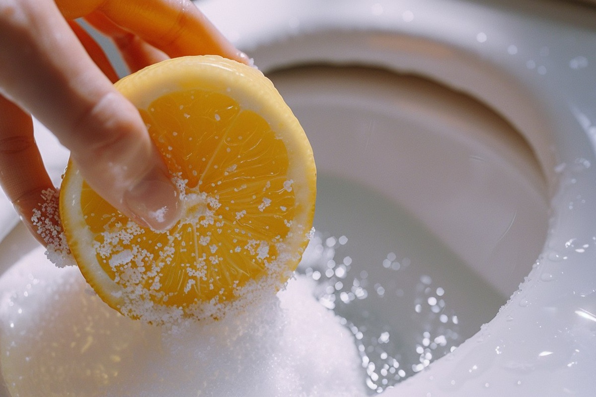 Die wirksamste und zugleich sicherste Kombination sind Zitrone und Kochsalz – Produkte, die jeder in seiner Küche hat. Zitronensaft enthält Zitronensäure, die Mineralablagerungen auflöst und leicht bleichend wirkt. Salz wirkt als mildes Scheuermittel und entfernt so den Belag, ohne die Oberfläche zu zerkratzen.