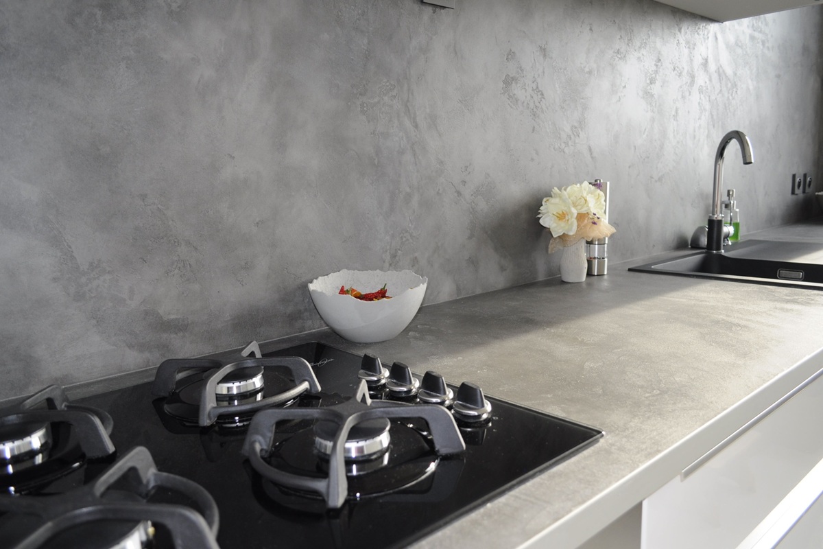 Die moderne Küche aus Mikrozement hat viele nützliche Eigenschaften.