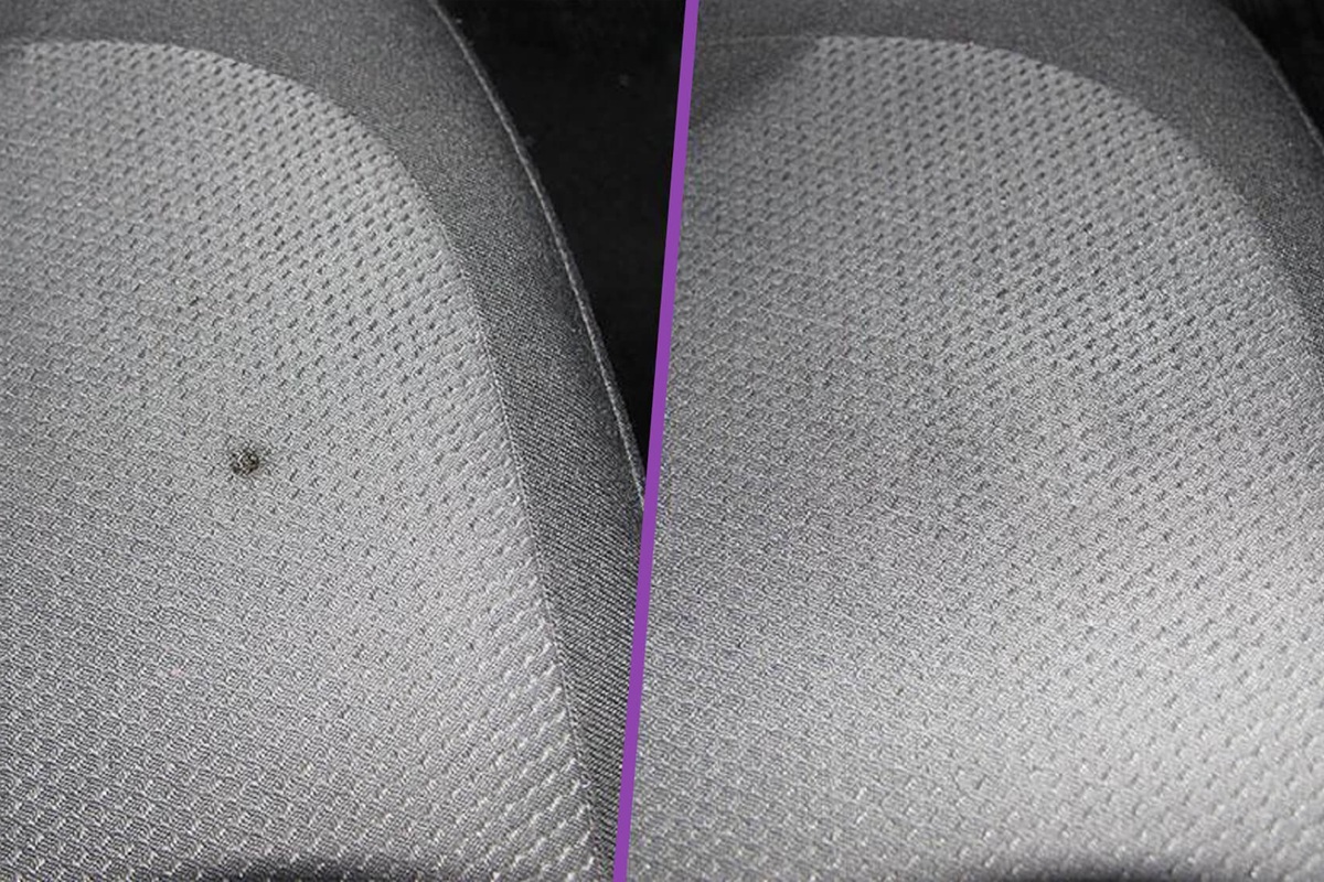 Bevor Sie die Löcher in den Autositzen nähen und flicken, ist es wichtig, diese zu reinigen und die Reste der Zigarettenasche zu entfernen.